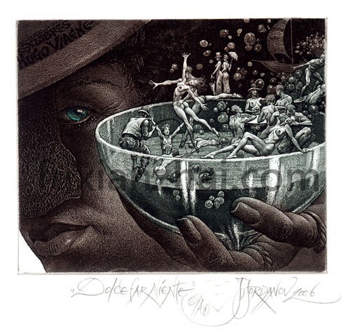 套印是版画技法中难度比较大的,分版与对版都存在着挑战,一般都是一版多色。乔瑟夫作品具有达利韵味。