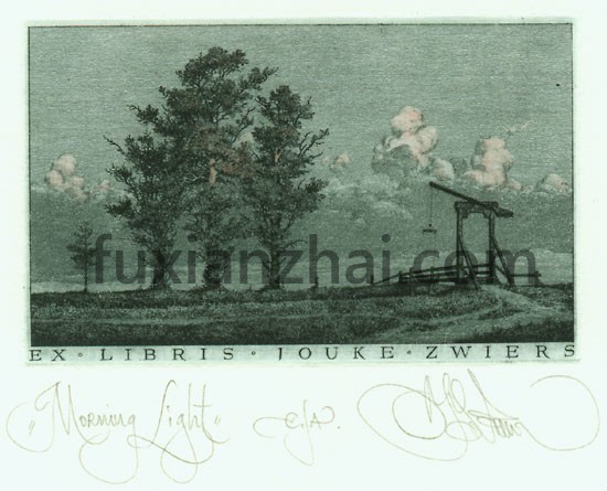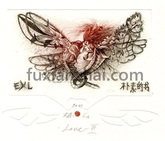 其干刻藏书票纤细的线条栩栩如生和毛刺给人一种特别的感觉,观赏后会留下深刻印象。